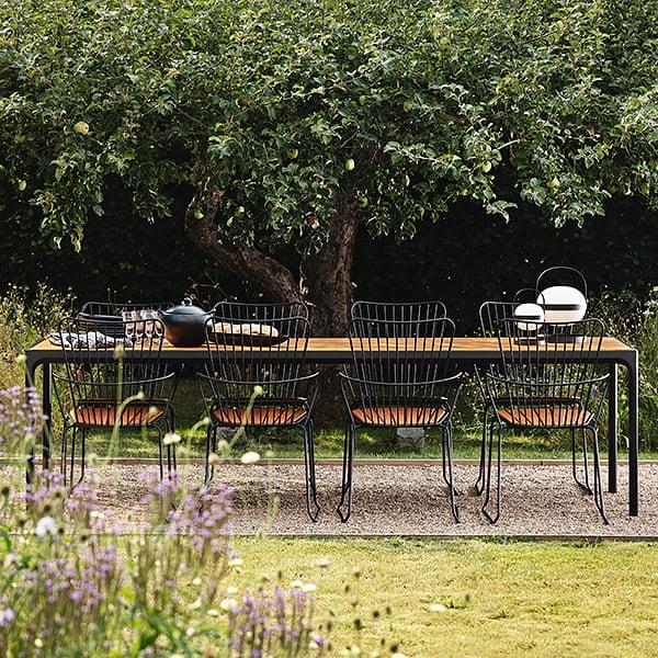 يتميز تصميمها عالي الجودة باستخدام المواد النبيلة مثل الخشب. من خلال اللعب بالرموز القديمة والبسيطة للتصميم الاسكندنافي ، تم تصميم أثاث HOUE للبقاء في الهواء الطلق على مدار السنة ، مع سهولة صيانته.