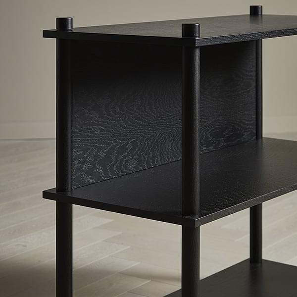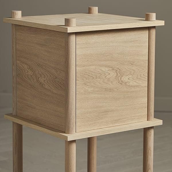 Materialien: Sperrholzregale, Beine aus massivem Holz, Furnier aus gebleichtem Eichenholz.