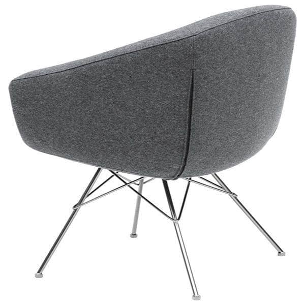 Der Sitz wurde als allumfassende Schale mit eleganten und dennoch komfortablen Linien entworfen. Die Beine sind mit einer eleganten Metalldrahtkonstruktion versehen, die einen Gesamteindruck von Leichtigkeit vermittelt.