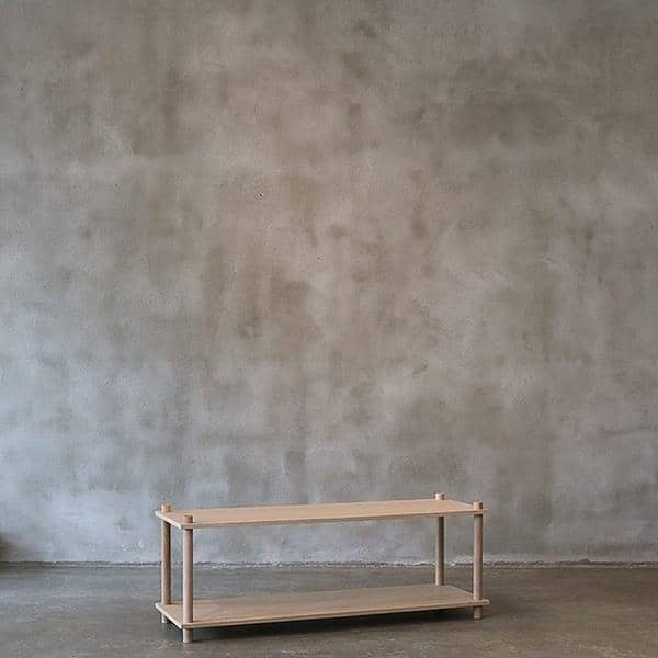 Materialer: Krydsfinish hylder, massivt træben, naturligt bleget egetræsfiner.