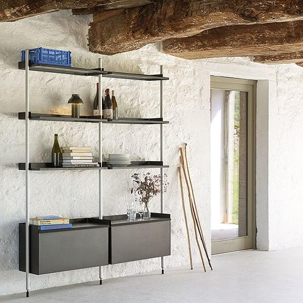 PIER SYSTEM, multifunktionel modulopbevaring system konstrueret af letvægtsaluminium og stål. HAY
