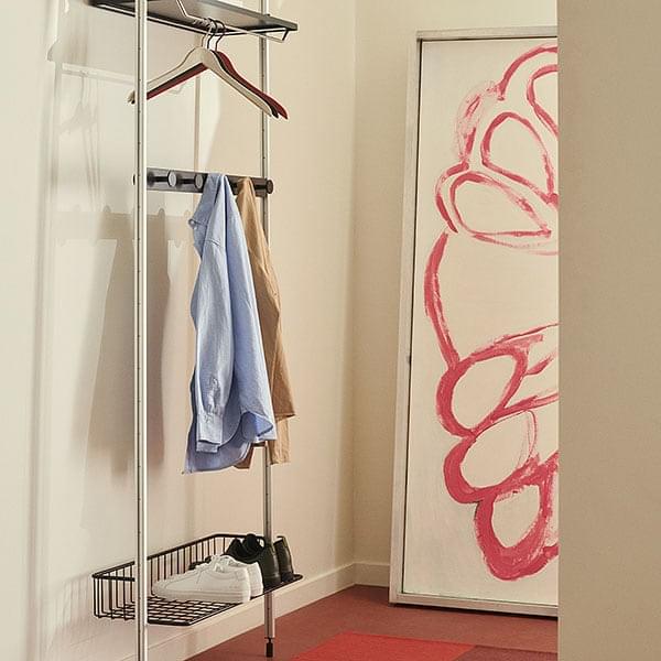 Dens design og lette montering gør det muligt at flytte og modificere den, så den passer til uendelige miljøer og funktioner – fra arbejdsområder til garderobeskabe, fra entre til køkken, derhjemme eller på kontoret.