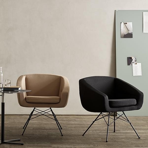 Elegante komfortable linjer... AIKO lænestol er designet som en allround loungestol til brug i hjemmet og i offentlige rum.