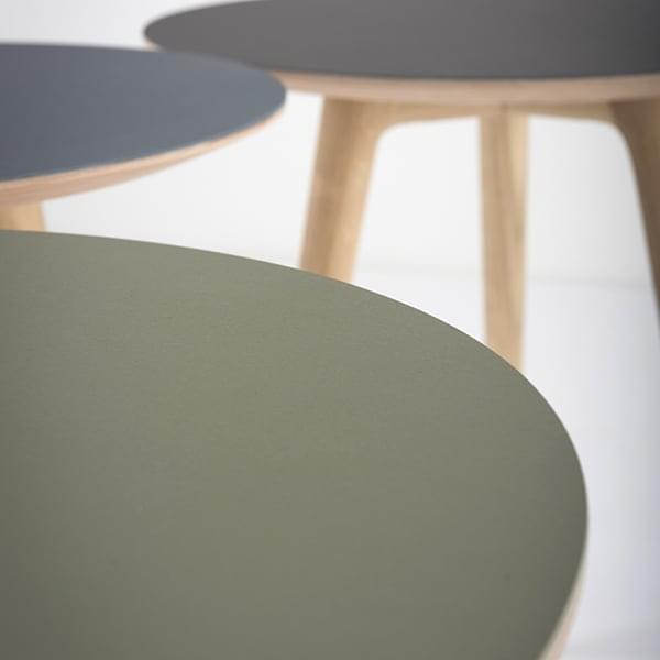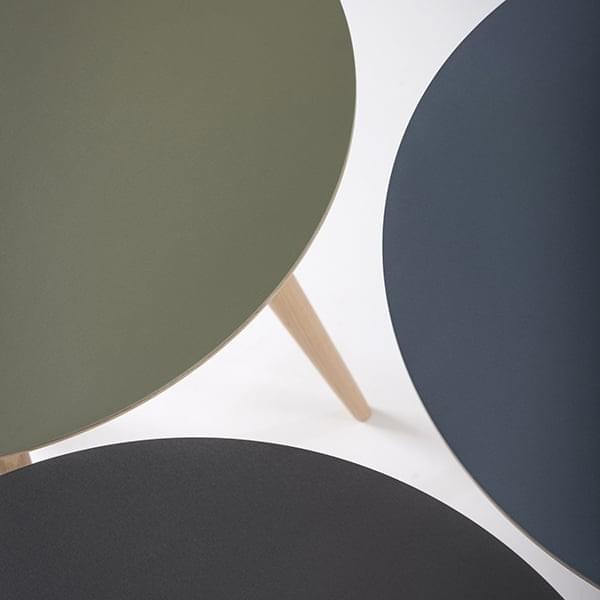 Vi sætter pris på kontrasten mellem benene i egetræ, som elegant fremhæver dens linoleumtop.