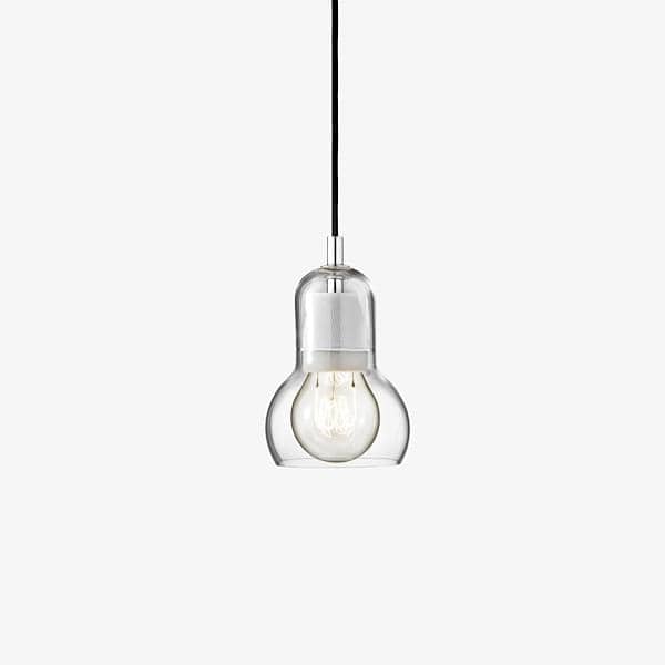 Formen refererer til de første elektriske pærer ved at bruge tykt gennemsigtigt glas. SOFIE REFER viderefører en elegant nordisk tradition og tilføjer hendes passion og hendes femininitet. De små ujævnheder i det mundblæste glas, gør hver af lamperne unikke. Denne kollektion afslører glaspusternes indsats med at vælge sand, sodavand og kridt, fint doseret til at skabe en moderne klassisk belysning efter en tusind år gammel metode.