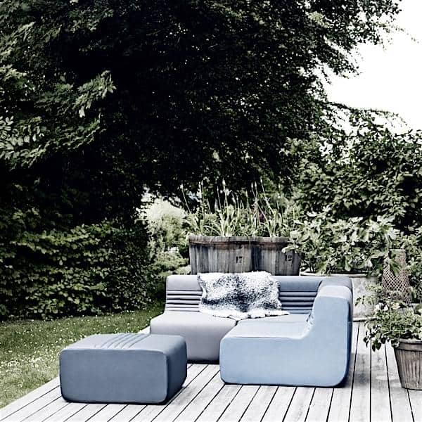 Den modulære sofa LOFT fås både til indendørs og udendørs, for eksempel til brug på din terrasse. Stofferne TEMPO OUTDOOR og VALENCIA-EXT er specielt designet til intensiv udendørs brug.