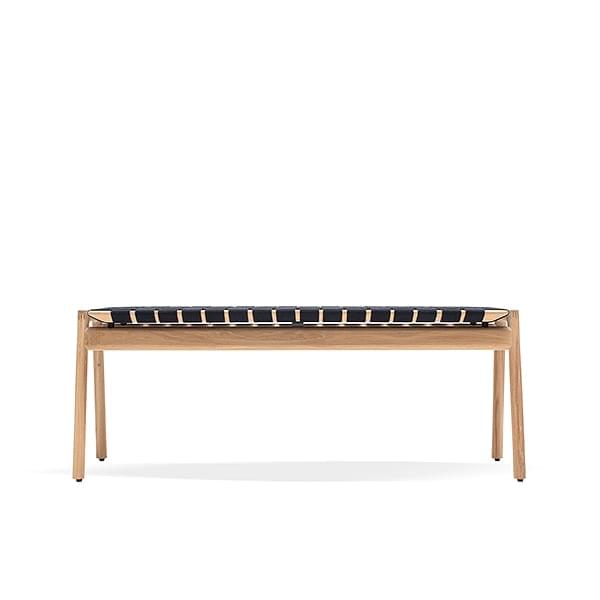 Una de sus principales características es que está hecho de materiales naturales, combinando roble macizo y correas de algodón, asegurando así una adición atemporal a su hogar.