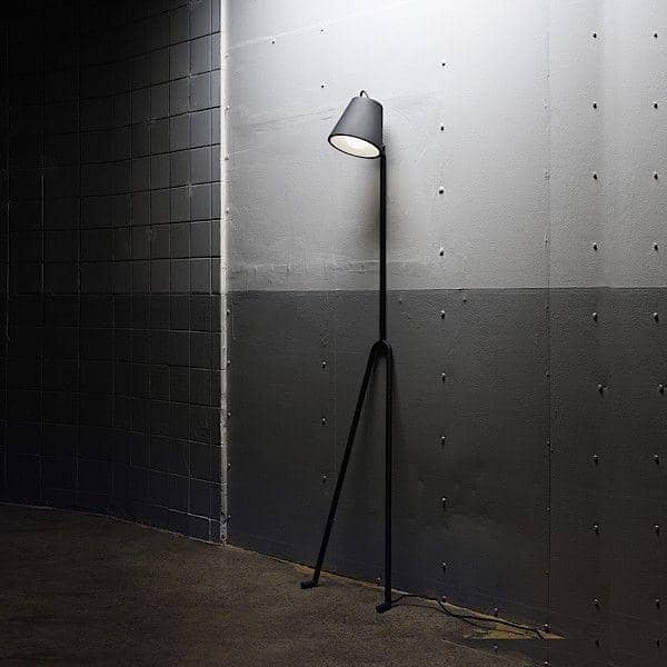 El cuerpo de Mañana apoyado en la pared. Mañana de mañana significa en español y relajado de la lámpara, la actitud indiferente comunica totalmente chill-out, tómalo con calma, mantener la calma. La lámpara está lacado en gris grafito para enfatizar la sensación de un dibujo a lápiz y cuenta con una pantalla giratoria de acero cromado con un bulbo grande mundo para dar la sensación de un rostro.