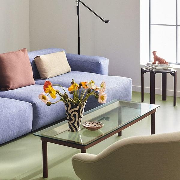 Creada por el diseñador noruego Martin Solem para HAY, KOFI es una gama de mesas de centro con tapa de vidrio elegantes y versátiles.