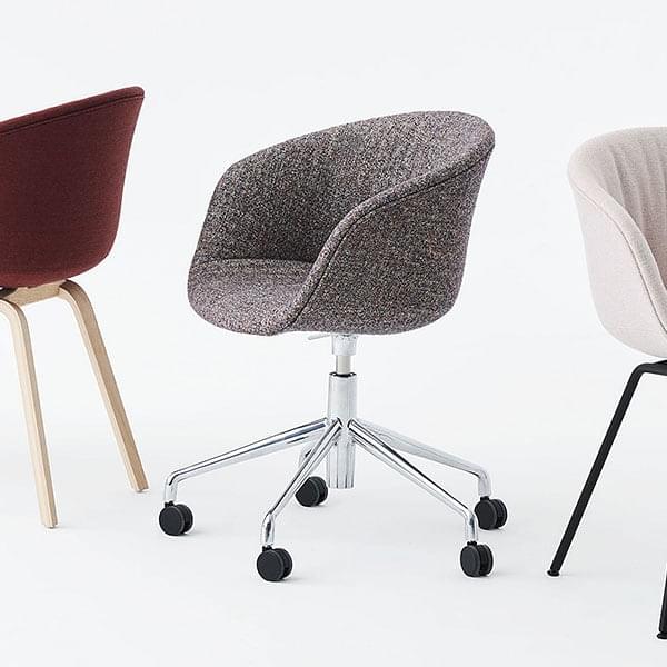 ABOUT A CHAIR AAC 53 Soft es una butaca con ruedas equipada con un sistema de resorte de gas, diseñada por Hee Welling para Hay (colección AAC).