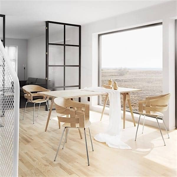 El asiento se propone en madera de roble o en madera de fresno (chapa).