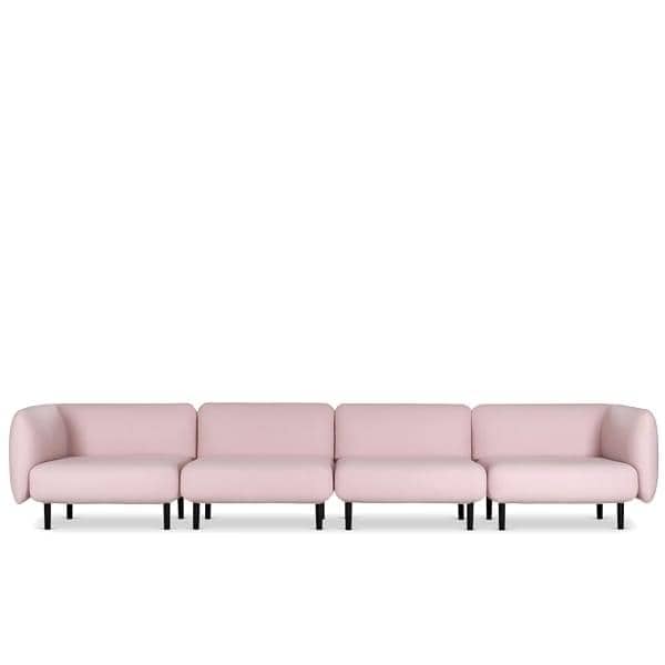 Un sofá modular con sus módulos de esquina y módulo central. Es poco profundo y, por lo tanto, es ideal para espacios pequeños.