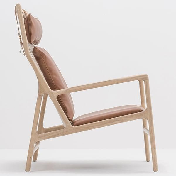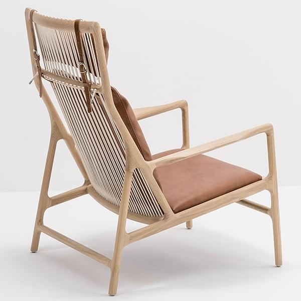On apprécie ses lignes minimalistes et l'utilisation de matériaux nobles tels que le chêne et le cuir, qui font de ce fauteuil un mobilier très haut de gamme.