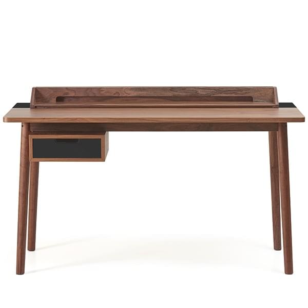 La scrivania è smontabile grazie a pattini e ruote, permettendo di memorizzare diversi accessori. Il cassetto e la parte posteriore della scrivania sono colorati in contrasto con il bel legno del vassoio e dei piedi, possono essere scelti diversi colori.