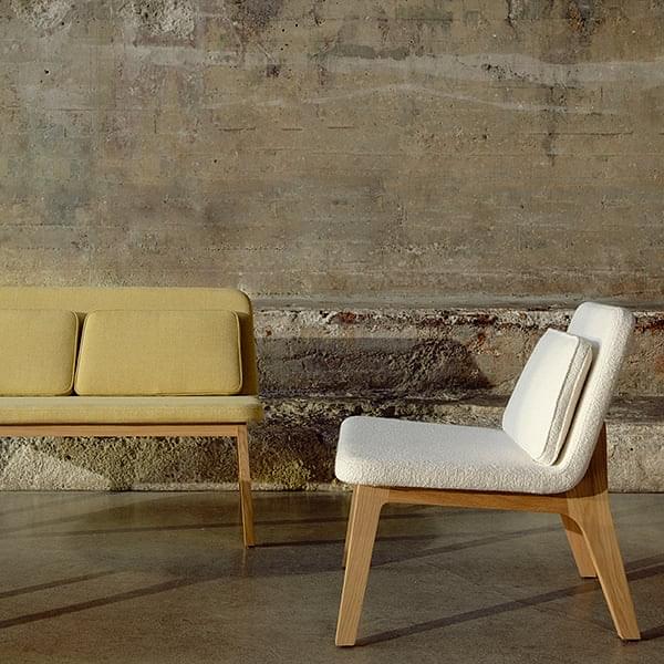 LEAN ラウンジチェアのベースはオーク、オイル、天然または黒の漆で作られています。織物は、Kvadratファブリック:Hallingdal、SteelcutTrioまたはDivina 3の範囲から選択できます。