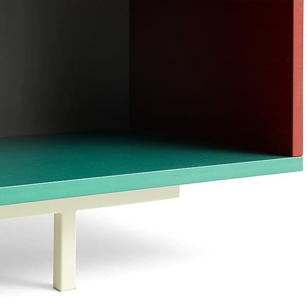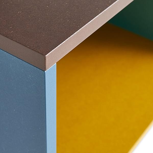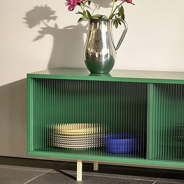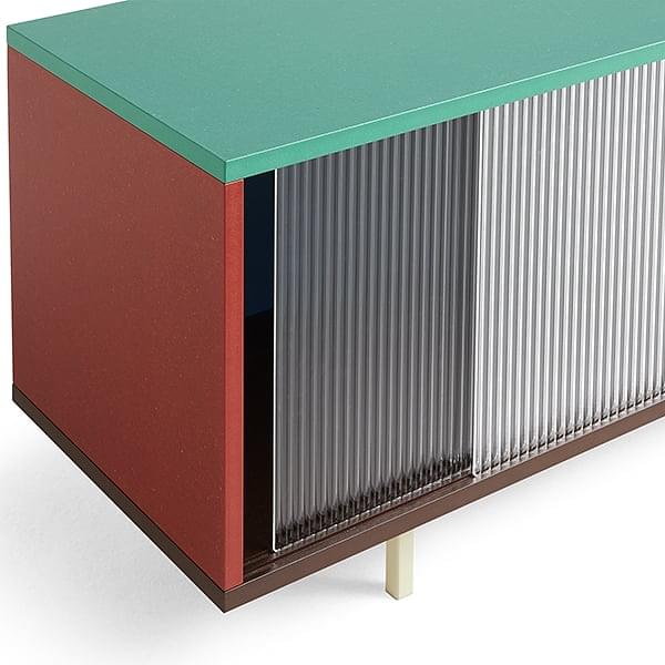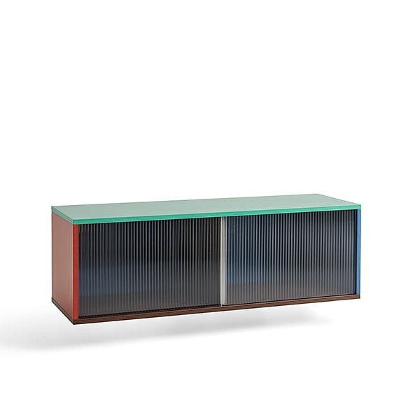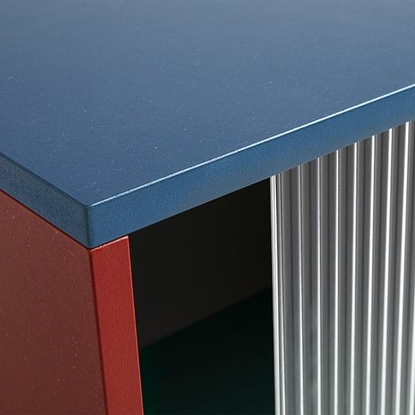 キャビネット本体は、FSC 認定を受けた独自の堅牢な MDF 素材である、有機的に染色された Valchromat で作られ、支持フレームは耐久性のあるスチールで作られています。カラー キャビネットは、モノカラーとマルチカラーの両方のオプションで、さまざまなバリエーションとサイズがあり、一部のバージョンではスライド ガラス ドアが付いています。