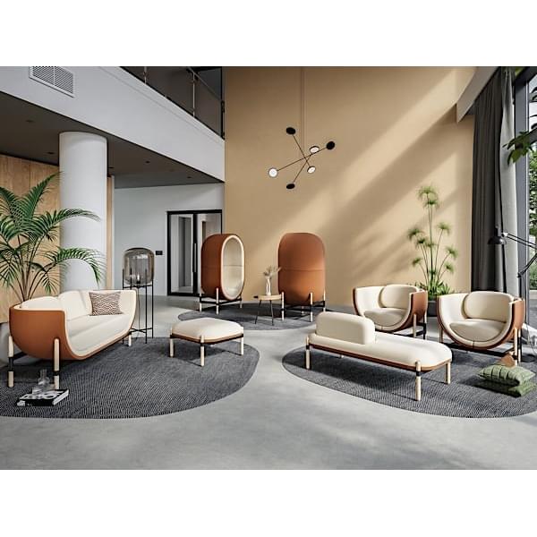 大規模な作業環境では、Capsuleはホテルのオフィスやロビーの他の部分から身を切り離すことなく親密さを生み出すことができるエレガントなオブジェクトです。