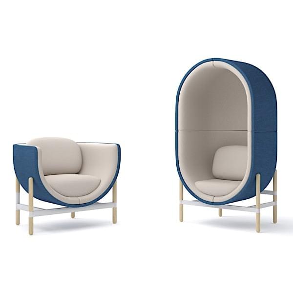 大きなオフィススペースだけでなく、レセプションエリアでも、 CAPSULE は環境から完全に遮断されることなく親密さを生み出すエレガントなオブジェクトです。繭の下半分のみを使用して、ラウンジバージョンが作成され、 CAPSULE カジュアルな環境に最適です。