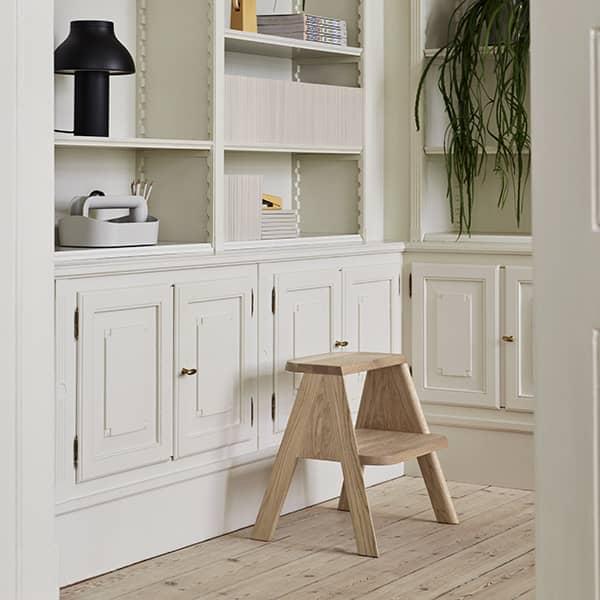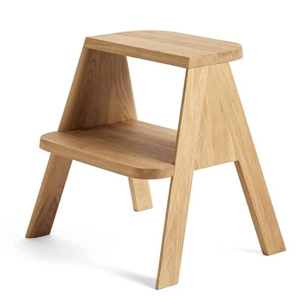 Det større bunntrinnet tilbyr to solide trinn når det brukes som stige, og lar det også brukes som et sidebord, krakk eller nattbord når det ikke utfører hovedfunksjonen.
