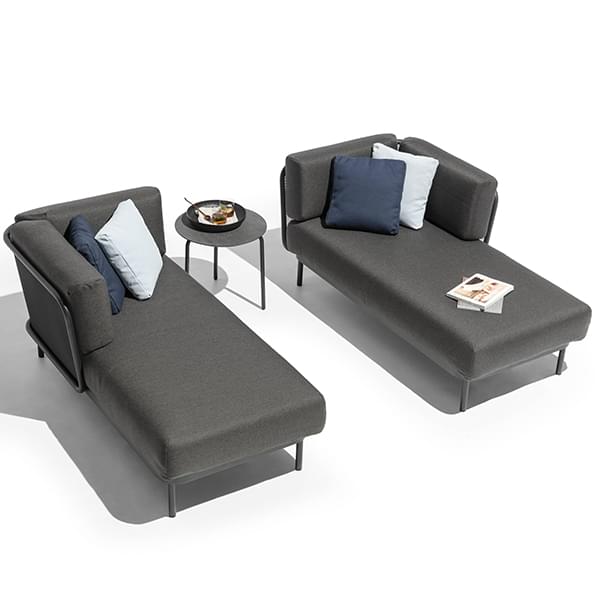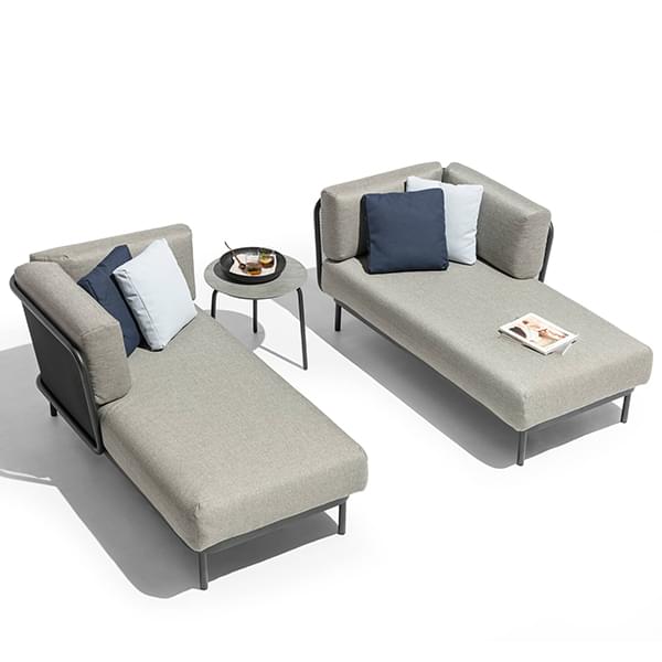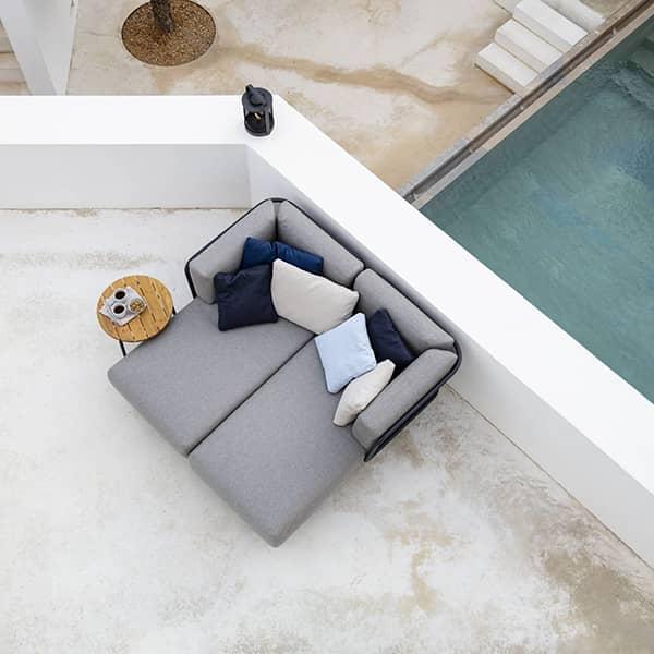 Baza-sofaen er bygget av belagt rustfritt stålkonstruksjon og veldig behagelige myke puter som er polstret med et spesifikt utendørsstoff av høy kvalitet.
