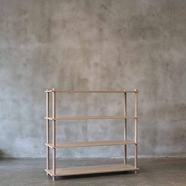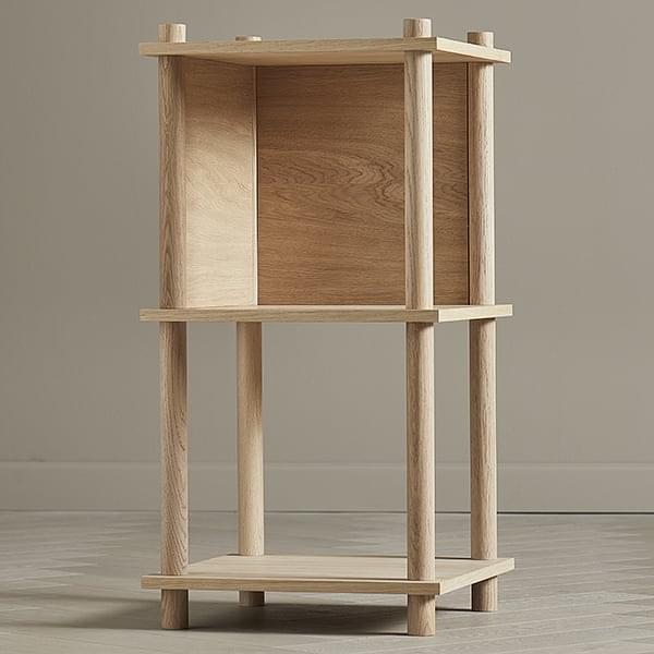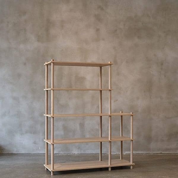 Materialer: Kryssfinish hyller, massivt treben, naturlig bleket eikfiner.
