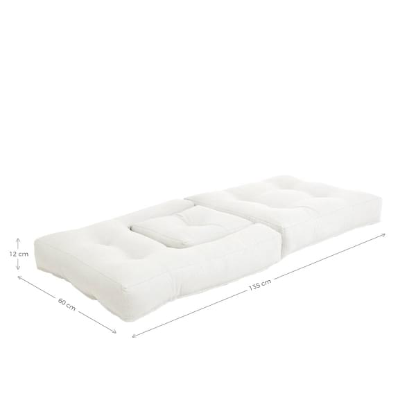 Med sine 3 lag resirkulert bomull er denne futonen, med sin tykkelse på 12 cm, en daglig følgesvenn som vet hvordan den skal tilpasse seg. Lenestol om dagen, forvandlet til en puff eller seng på sekunder.