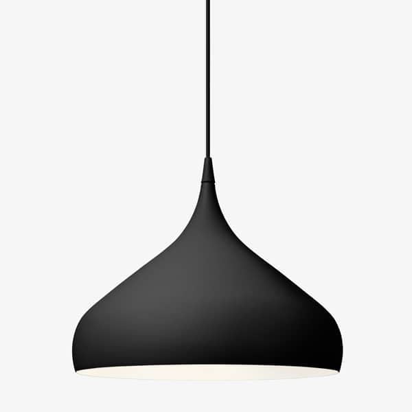 Spinning lys har spunnet aluminium diffuser lakkert i sort, hvit eller grå og tilbys med en 7,5' PVC ledning i matchende farge.