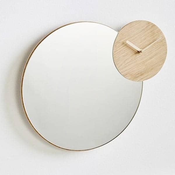TIMEWATCH elegantemente combina um espelho e um relógio de duas formas circulares.