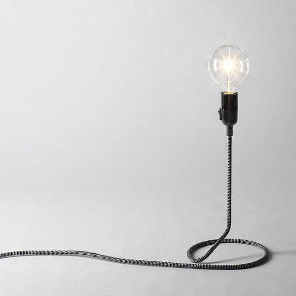 A CORD LAMP e sua irmãzinha o MINI CORD LAMP resolve de uma forma lúdica o "problema" do fio elétrico: o fio torna-se o pé da lamp, e se transforma ao mesmo tempo em ultra-inteligente deco detalhe! Inicialmente curva no chão, ele brota e depois à direita nos ares.