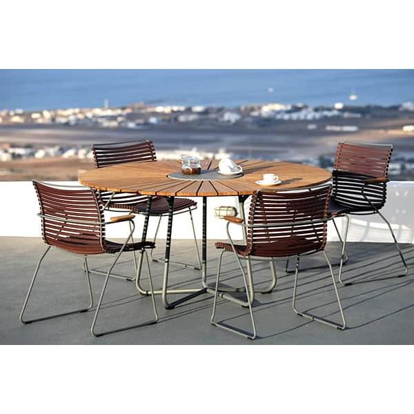 Mesa de jantar redonda CIRCLE, bambu e granito, alumínio com pintura à pó, para ambiente externo