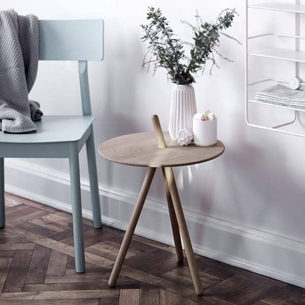 COME HERE mesa lateral é uma construção simples, mas bonita, que vai ser um coletor do olho em qualquer sala.